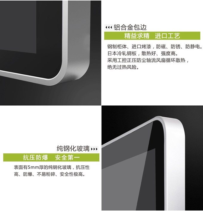 產(chǎn)品簡介:完美的視覺表現(xiàn)!實現(xiàn)廣告在消費人群的精準投放,品牌展示和推廣的有效窗口,適合擺放在品牌專賣店、連鎖加盟店、高檔酒店及各種公共場所做品牌宣傳展示之用,也可以用于地鐵等場所成為公共事業(yè)推廣的窗口。