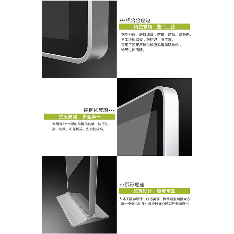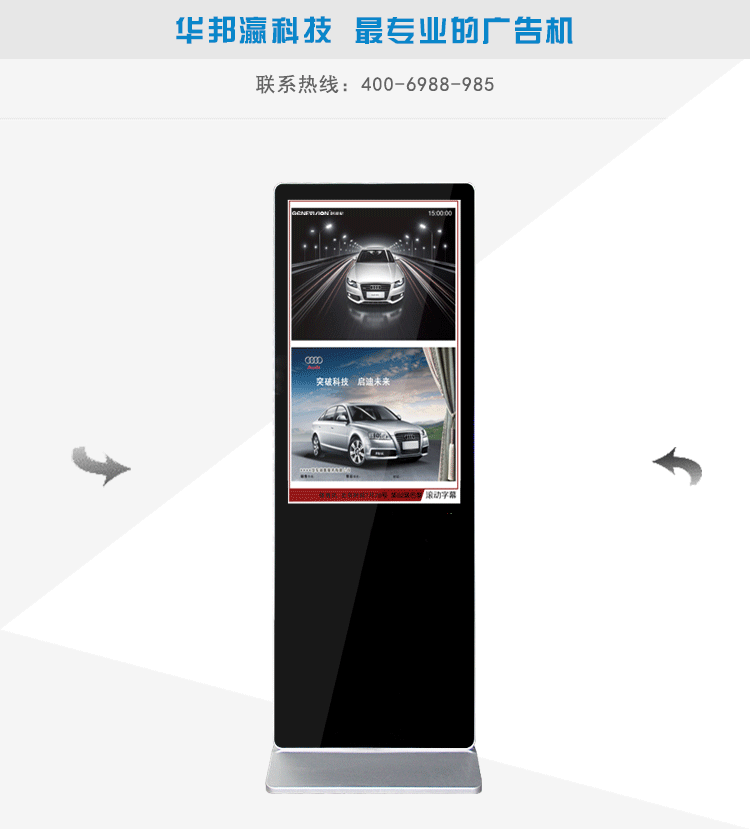 產(chǎn)品簡介:完美的視覺表現(xiàn)!實現(xiàn)廣告在消費人群的精準(zhǔn)投放,品牌展示和推廣的有效窗口,適合擺放在品牌專賣店、連鎖加盟店、高檔酒店及各種公共場所做品牌宣傳展示之用,也可以用于地鐵等場所成為公共事業(yè)推廣的窗口。